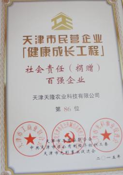 会上发布了“科技创新100强”、“社会责任(捐赠)100强”、“优秀党组织100强”等入选企业名单。天隆农业、天隆种业分获天津市科技创新百强、社会责任(损赠)百强、优秀党组织百强等四项殊荣。
