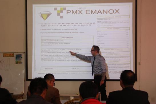 David Manghebati先生认真分析了欧盟抗生素的使用现状及未来发展趋势,技术总监Nicolas Pelier先生深入讲解了科莱美、伊尓香等产品的功效和使用效果,我公司总经理及相关人员参加了此次培训会。大家一致认为此次进口的法国产品填补了国内市场的空白,市场潜力巨大。