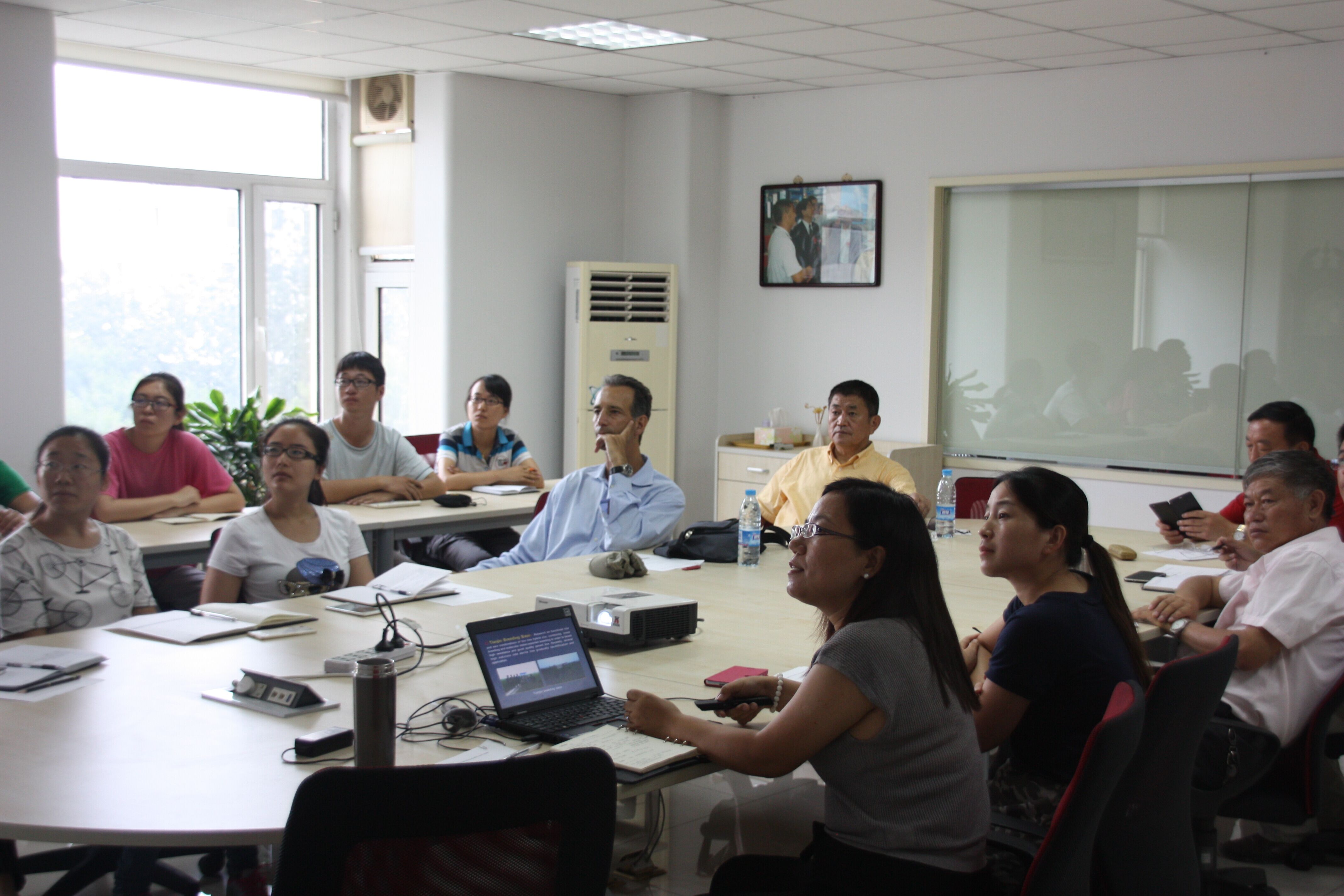 当天下午双方代表在天隆公司会议室召开了商务会议,参加本次商务会议的天隆代表有公司科研技术总监(国家粳稻中心主任)华泽田教授、党总支书记杨春连、国际业务部副经理眭丽英、科研部副处长李志彬及国际业务部、科研部等相关人员。