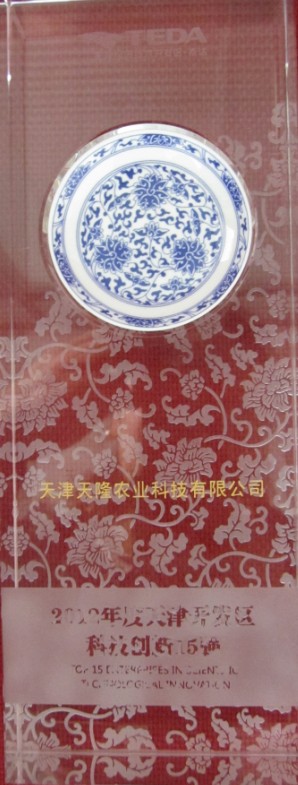 我公司继先后获得2012年度“天津市百家优秀科技小巨人企业”、“天津市科技小巨人领军企业”、“滨海新区科学技术进步三等奖”、“滨海新区农业产业化市级重点龙头企业”之后,再次获得天津开发区2012年度科技创新15强单位称号。
