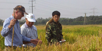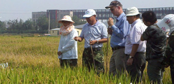 在科研部华教授和东丽经理的陪同下,客人详细了解了我公司杂交粳稻的品种类型和种植情况,并在十二大街科研基地和宁河基地进行了实地参观。