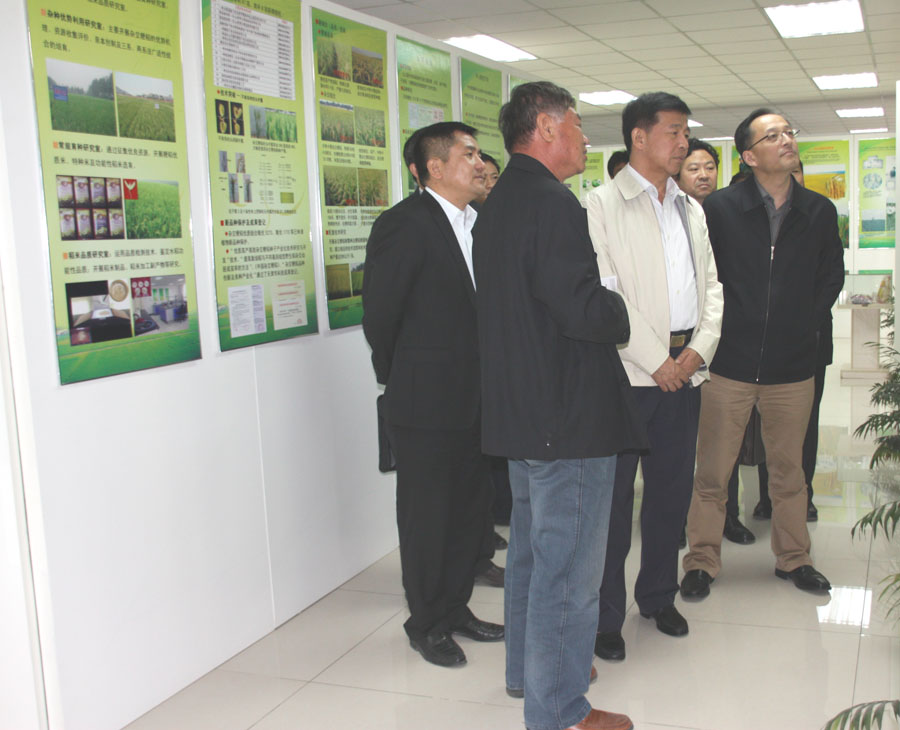 张国庆主任一行在董事长包万军等人陪同下参观了公司杂交水稻展厅和品质分析实验室,听取了公司经营发展情况的汇报。公司技术总监详细介绍了科研项目进展、科研基地建设及功能米的选育情况。