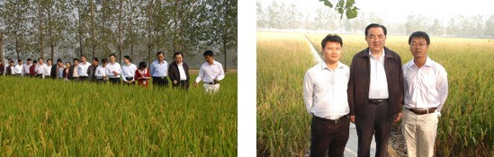 谢辉博士讲解杂交水稻种植情况 丁主任与天隆公司人员合影