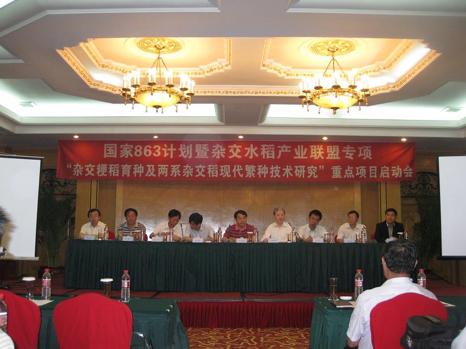 2010年6月6日,由杂交水稻产业技术创新战略联盟牵头组织的国家863计划“杂交粳稻育种及两系杂交稻现代繁种技术研究”重点项目启动会在天津开发区泰达国际会馆召开。该项目分6个课题:高异交粳型不育系及强优恢复系选育、高产优质多抗广适杂交粳稻组合选育、杂交粳稻配套应用技术研究、低风险籼型两用不育系的创制与应用、两用核不育系提纯复壮技术研究和两系杂交稻现代安全繁殖制种技术研究,由国家杂交水稻工程技术研究中心天津分中心牵头30家成员单位共同实施。启动会开幕式由天津市科委农村处宋广平处长主持,中国工程院院士、杂交水稻产业联盟副理事长朱英国院士,科技部农村科技司王学勤处长,科技部中国农村中心张富博士,天津滨海新区科委主任、天津市科委总工程师黄亚楼,天津滨海新区农业局窦峰副局长,天津经济技术开发区科技局韩玉刚副局长,国家杂交水稻工程技术研究中心常务副主任、产业联盟副理事长邓华凤博士,押球官网平台包万军董事长等有关领导和专家出席了本次会议。